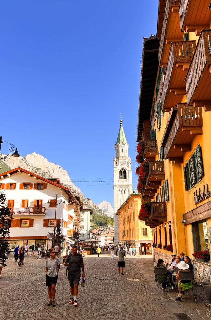 Cortina d’Ampezzo, the ultimate hub for all mountain enthusiasts – whether it’s skiing, trail running, or hiking. Nestled in the heart of the Dolomites, Cortina d’Ampezzo is a gem of northern Italy. Following two days of challenging hikes, we dedicated our third day to exploring Cortina’s charming center. Wandering around, we soaked in the lively atmosphere while sipping on Aperol or beer (maybe more than one or two). For the best pizza in town, head to Pizzeria al Taglio, a tiny little spot where pizza is served by slices. Don’t miss out on the delightful arancini – they’re a true delight. Our appreciation for this cozy spot led us back there after our hike to Lake Sorapis.