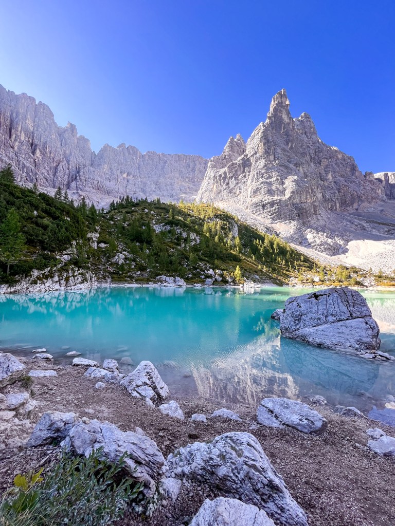 On yet another day filled with adventure, we set out on a hike to Lago di Sorapis, located near Cortina d’Ampezzo. Lago di Sorapis is famous for its turquoise water, which mirrors the beauty of the nearby mountains. The lake’s bright turquoise color makes the stunning scenery even more surreal, the reason why it attracts many visitors during the hiking seasons.