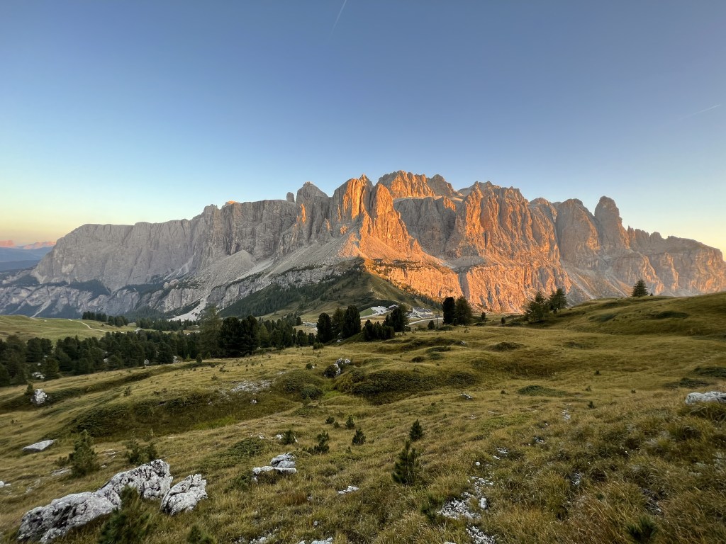 Following a relaxing day in Corvara in Badia, we decided to take the bus instead of the car up to Passo Gardena, with the plan of enjoying the sunset from the summit of Gran Cir. The bus journey was a bit of an adventure with the winding turns. While the hike covered a modest distance of about 4.5 kilometers, the elevation can be considered quite challenging. Scaling rocky terrain with secured passages, the panoramic view from the summit made every effort worthwhile. This is a place etched in my memory – a surreal, out of this world view.