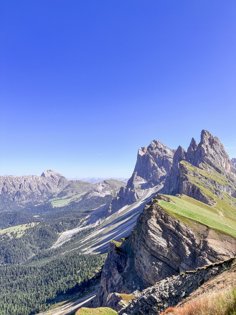 The summit of Seceda (2519 meters) is another popular destination is the Dolomites, because of its incredible view of the Odle/Geisler Peaks.
