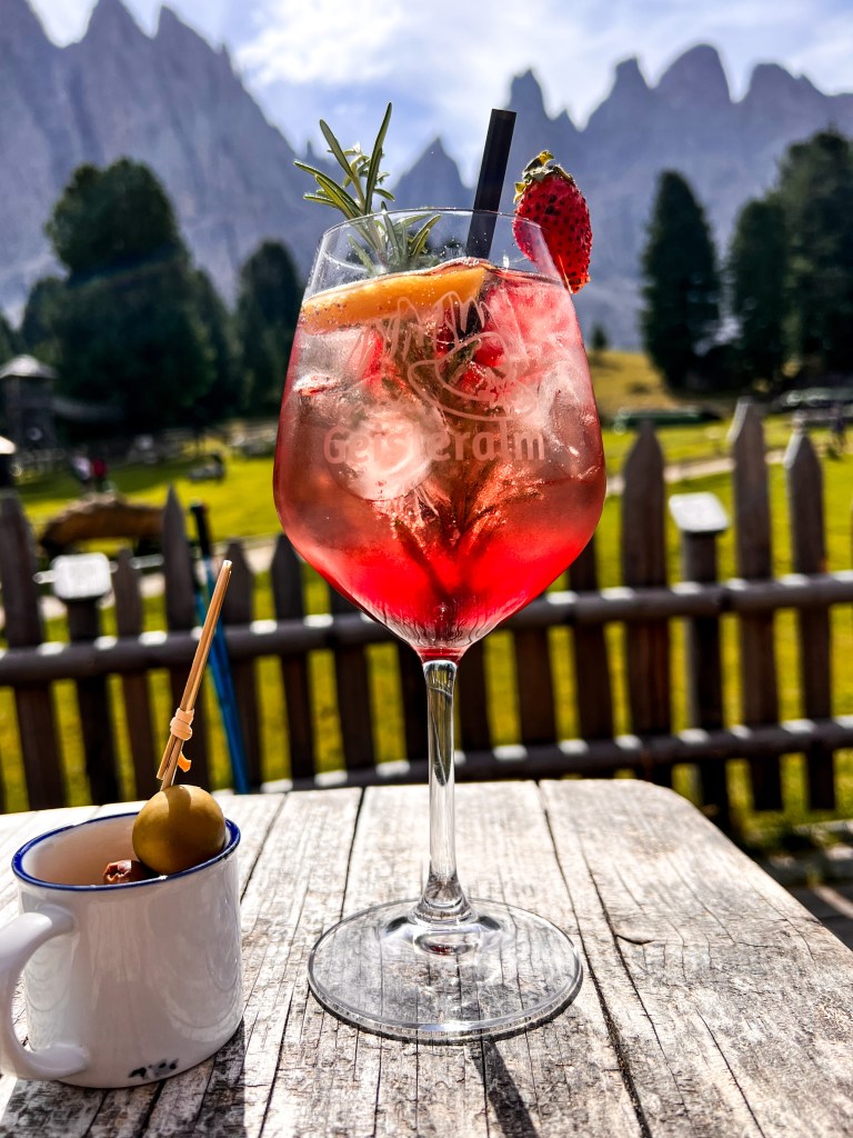 Reaching Geisler Alm, we stopped for a last lunch in the Dolomites. The Geisler Alm is one of the most popular huts in the area. From the terrace, the Geisler/Odle Group serves magnificent view. My choice was Keiserschmarrn of course, with coffee and a cocktail. The perfect ending for the perfect vacation.