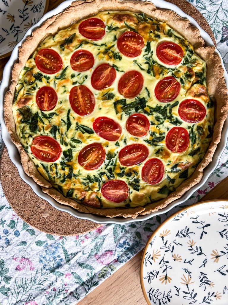 I just discovered quiche and I must say I became a big fan of it. It’s one of those dishes that feels fancy but is so easy to throw together, whether for brunch, or even for bunch. My favorite this far is this spinach and cherry tomato quiche—it’s savory, colorful, and packed with flavor. Plus, it comes out of the oven looking so colorful and smelling amazing that, if you’re like me, you’ll just want to stare at it for a while—almost feeling guilty about cutting into it.