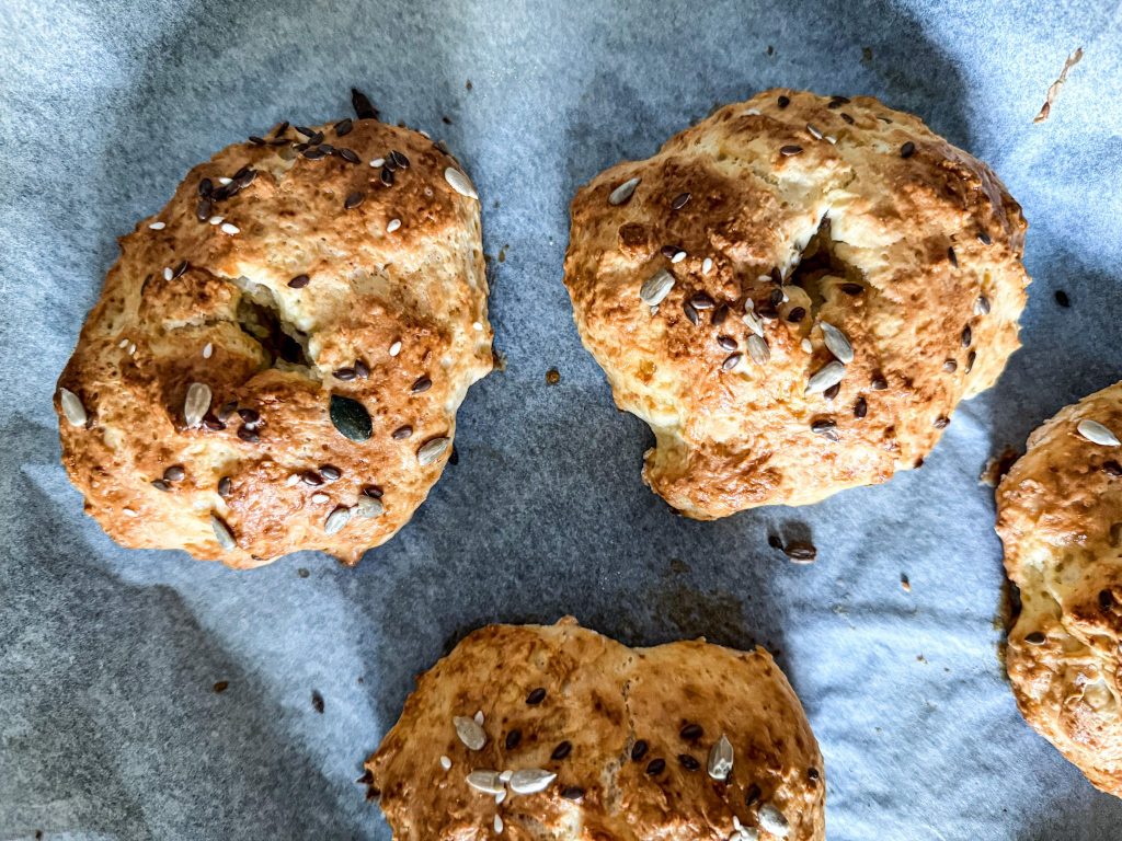 - toppings: bagel seasoning, sesame seeds, poppy seeds